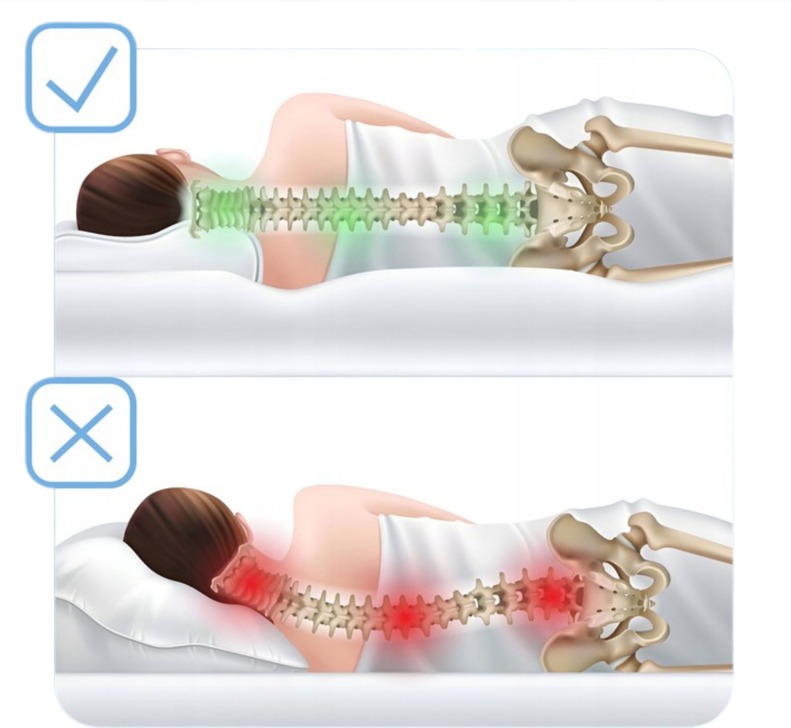 Ортопедическая подушкаблагодаря своей структуре поддерживает естественный изгиб позвоночника и помогает в правильном положении положение тела. Устойчивое положение во время сна защищает шейный отдел позвоночника, позволяет избежать скованности шеи и плохой осанки.