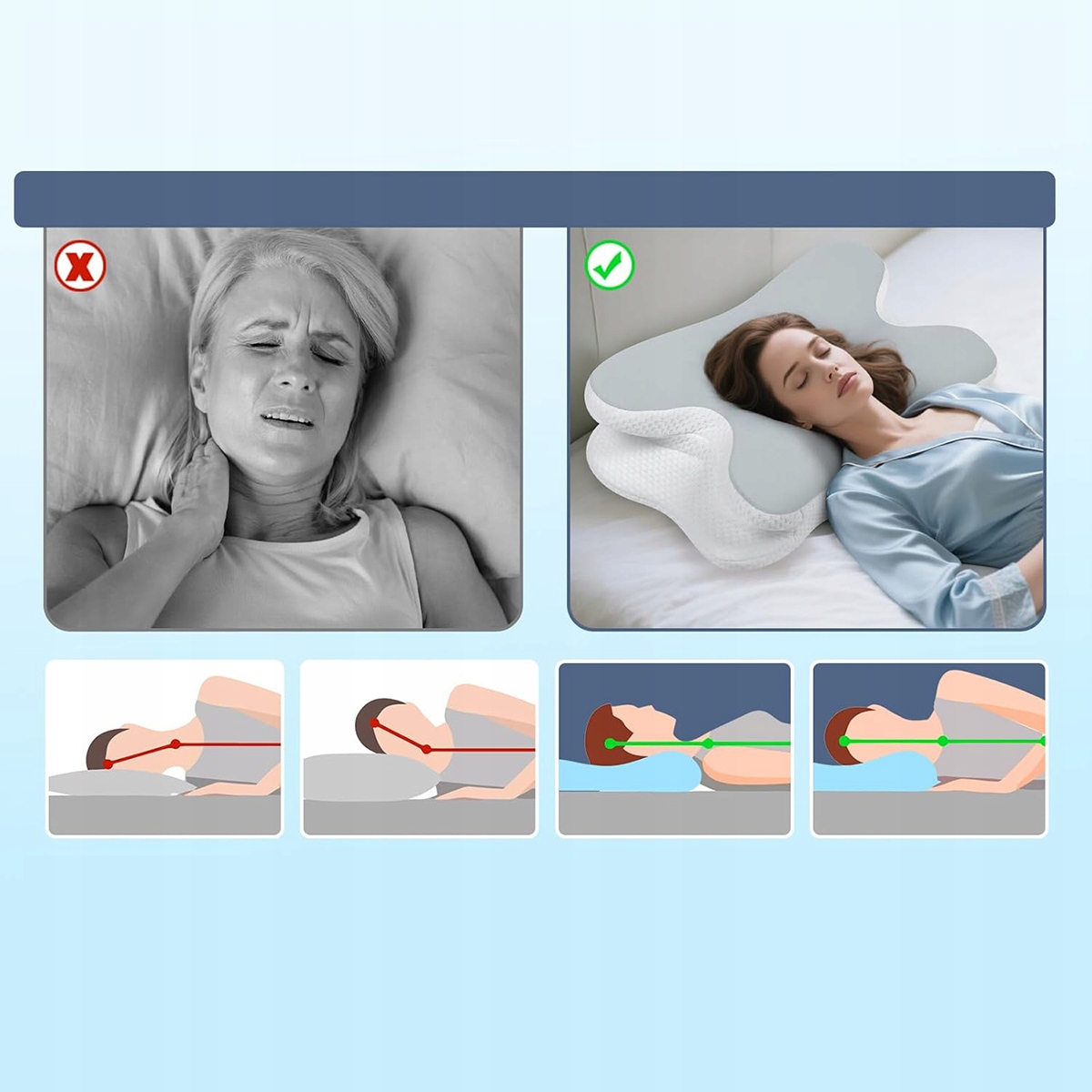 Вы часто просыпаетесь с болью в шее или страдаете от бессонницы? Наш дизайн контура шеи был специально разработан с учетом естественных контуров головы, шеи и плеч. Эта подушка из пены с эффектом памяти обеспечивает оптимальную поддержку и снимает дискомфорт, поэтому вы можете наслаждаться спокойным ночным сном. Идеальная подушка для сна для тех, кто страдает от болей в шее и головной боли.