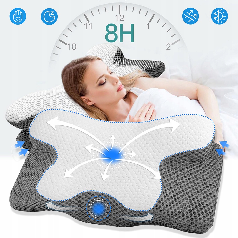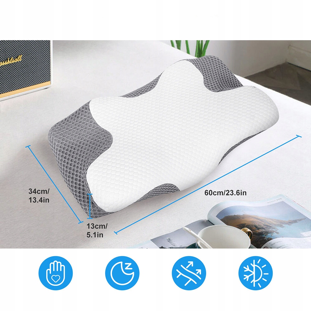 ОРТОПЕДИЧЕСКАЯ ПОДУШКА ИЗ ПЕНЫ С ПАМЯТЬЮ, ЭРГОНОМИЧНАЯ, БЕЗОПАСНАЯ ДЛЯ КОЖИ.