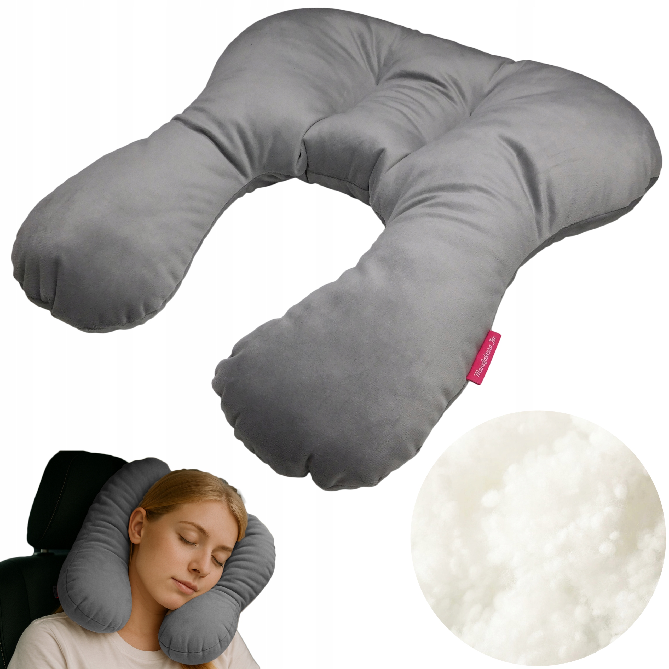 из мягкого, приятного на ощущение велюра, гарантирует ощущение расслабления и упаковки. Благодаря надлежащей начинке подушки, она идеально приспособлена к форме головы, позволяя расслабиться и комфортный сон в любом положении.