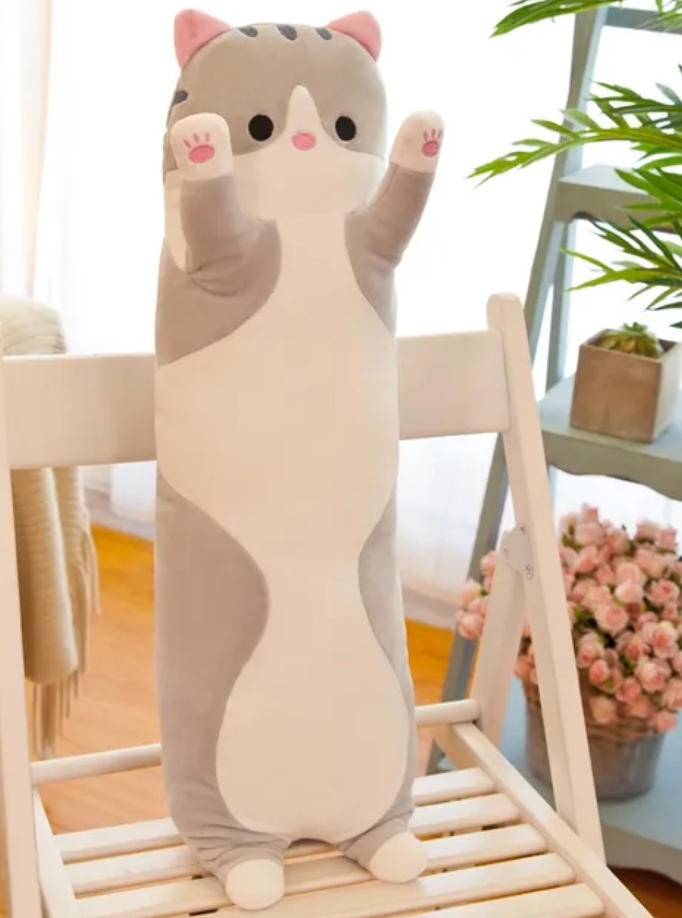 Подушка-ролик кіт плюшевий 50см м'який кіт талісман сірий 24год з Польщі