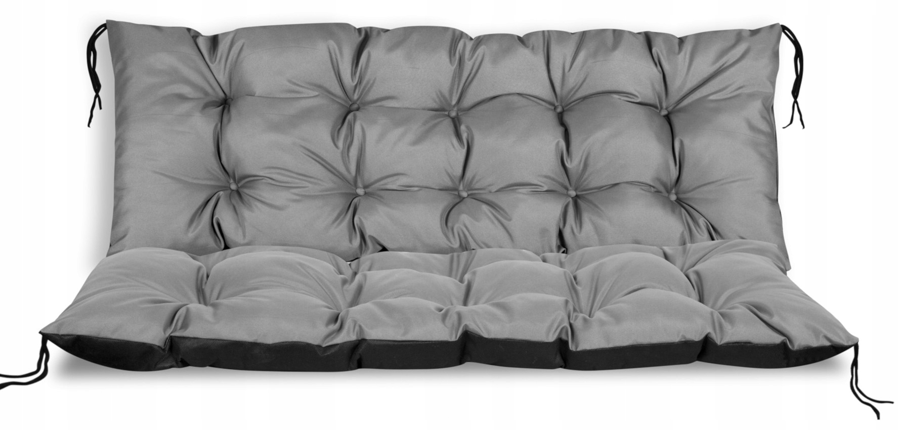 Подушка мягкая и удобная. На каждом углу имеются веревочки, благодаря которым подушку можно прикрепить к скамейке, качелям, поддону, шезлонгу.