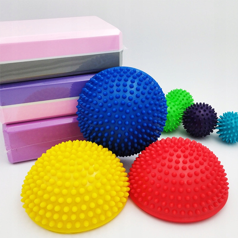 Сенсорная полусфера предназначена для упражнений на равновесие, коррекции дефектов осанки и массажа стоп. Это очень хорошо работает при игре с детьми. Специальные шипы конической формы стимулируют сенсорные рецепторы и улучшают кровообращение, расслабляя и расслабляя их. Они используются для стимуляции глубоких ощущений и осязания.