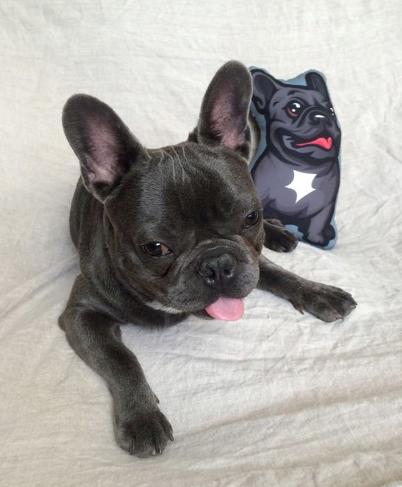 Подушка собака чорний французький бульдог міді