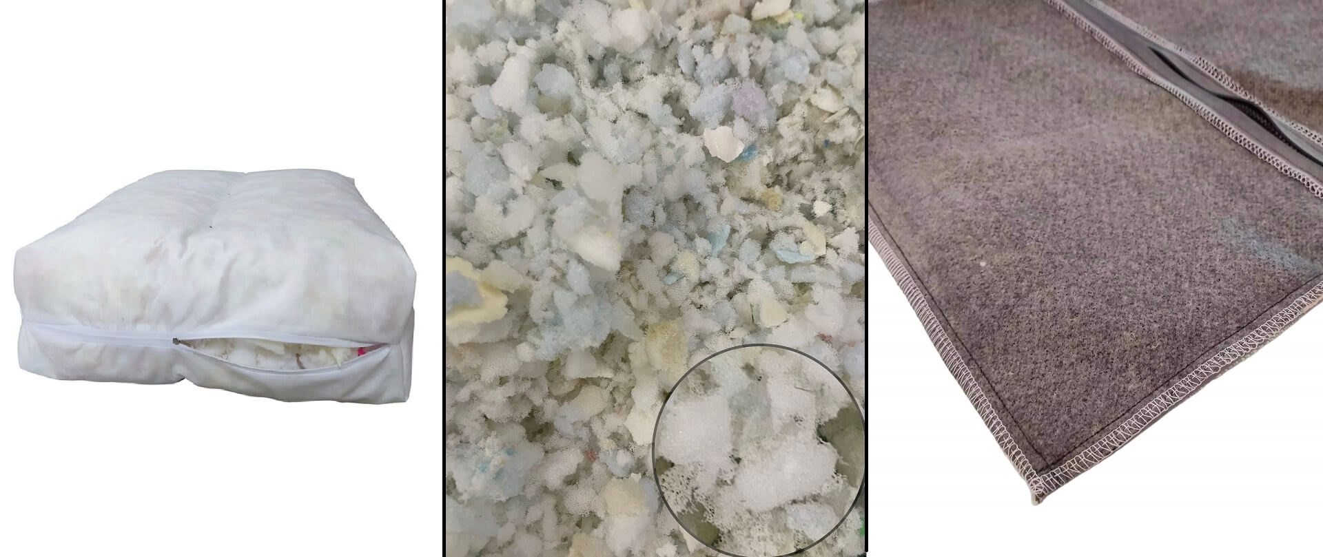 Вставки заполнены пеногранулятом (пенопластом). Придает подушке прочность и эластичность.