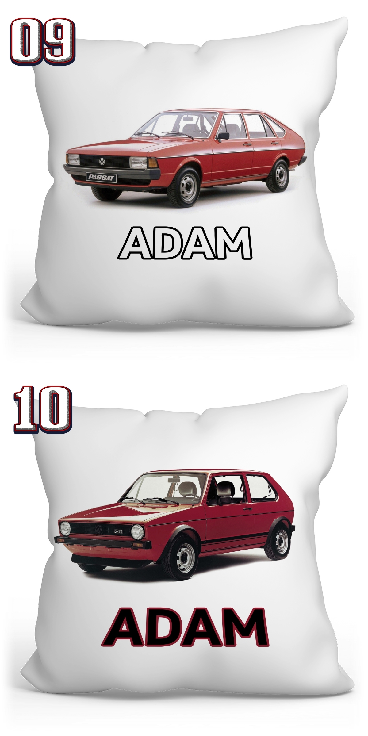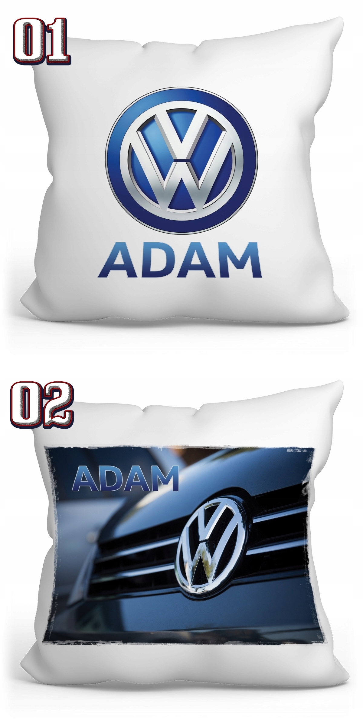 Подушка 40х40 с принтом - VOLKSWAGEN + возможность нанесения имени или другого текста на товар, включенный в стоимость.