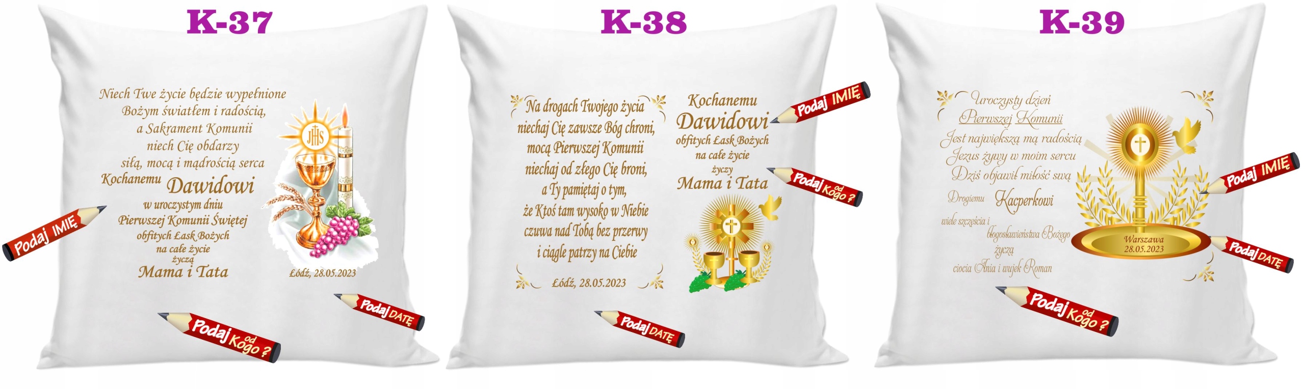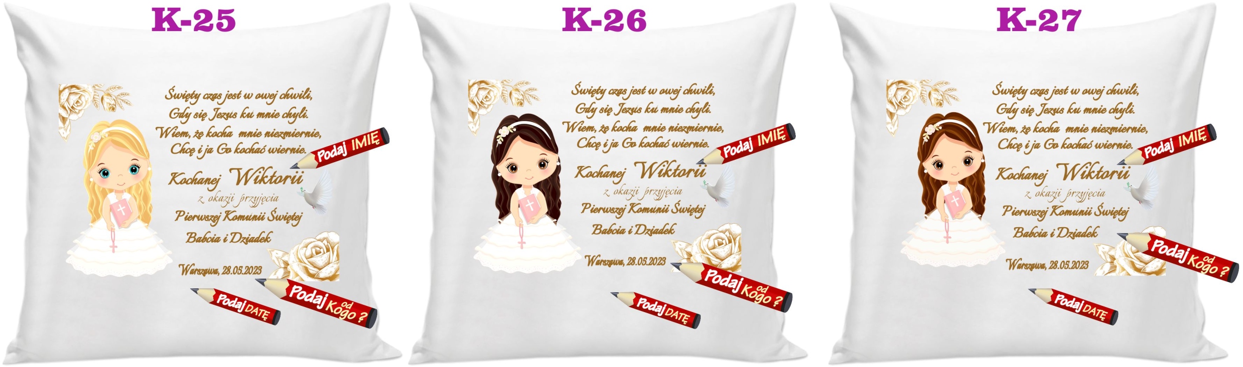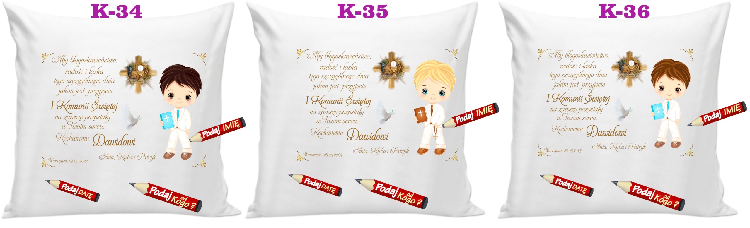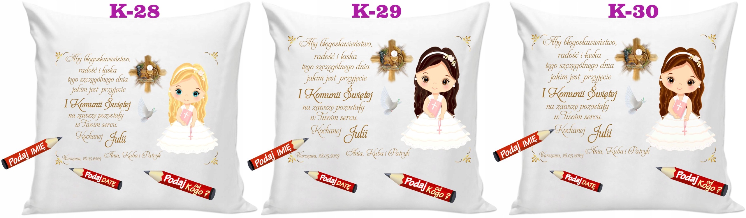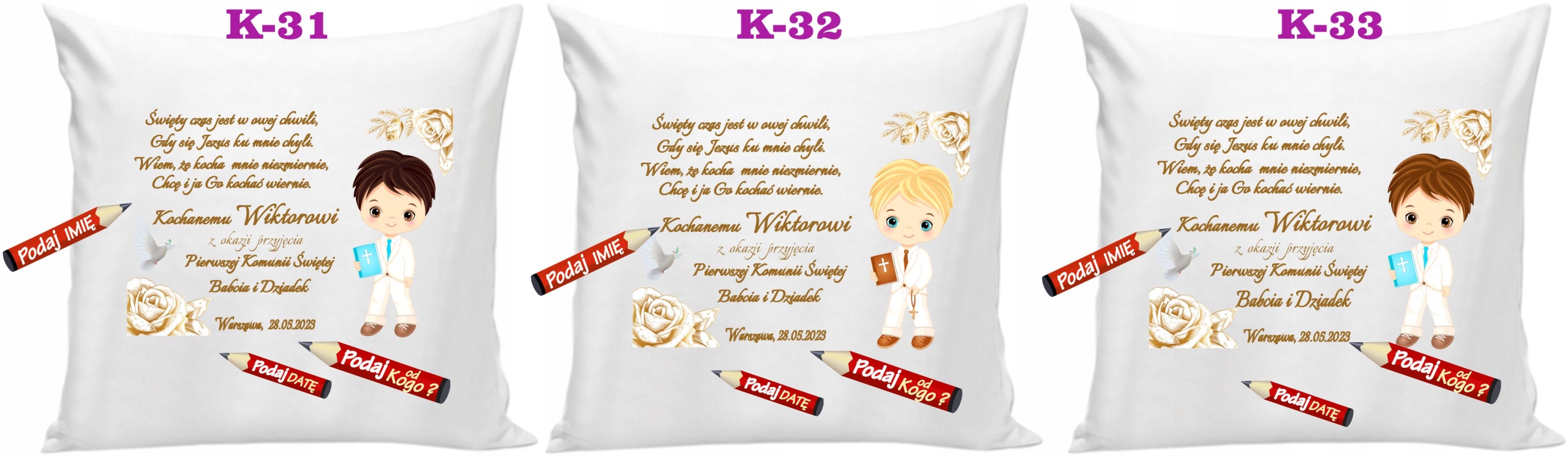 Тромательная и практичная подушка с именем и пожеланиями ребенка - сувенир ко Святому Причастию и дате Первого Причастия.