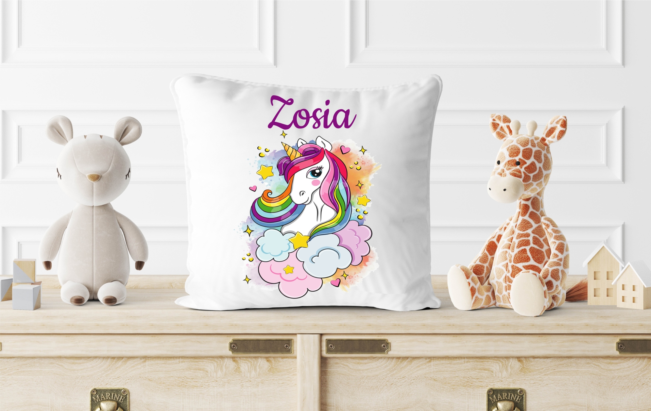 Подушка з кольоровим ЄДИНОРОГОМ + ІМ'Я 40 X 40 см