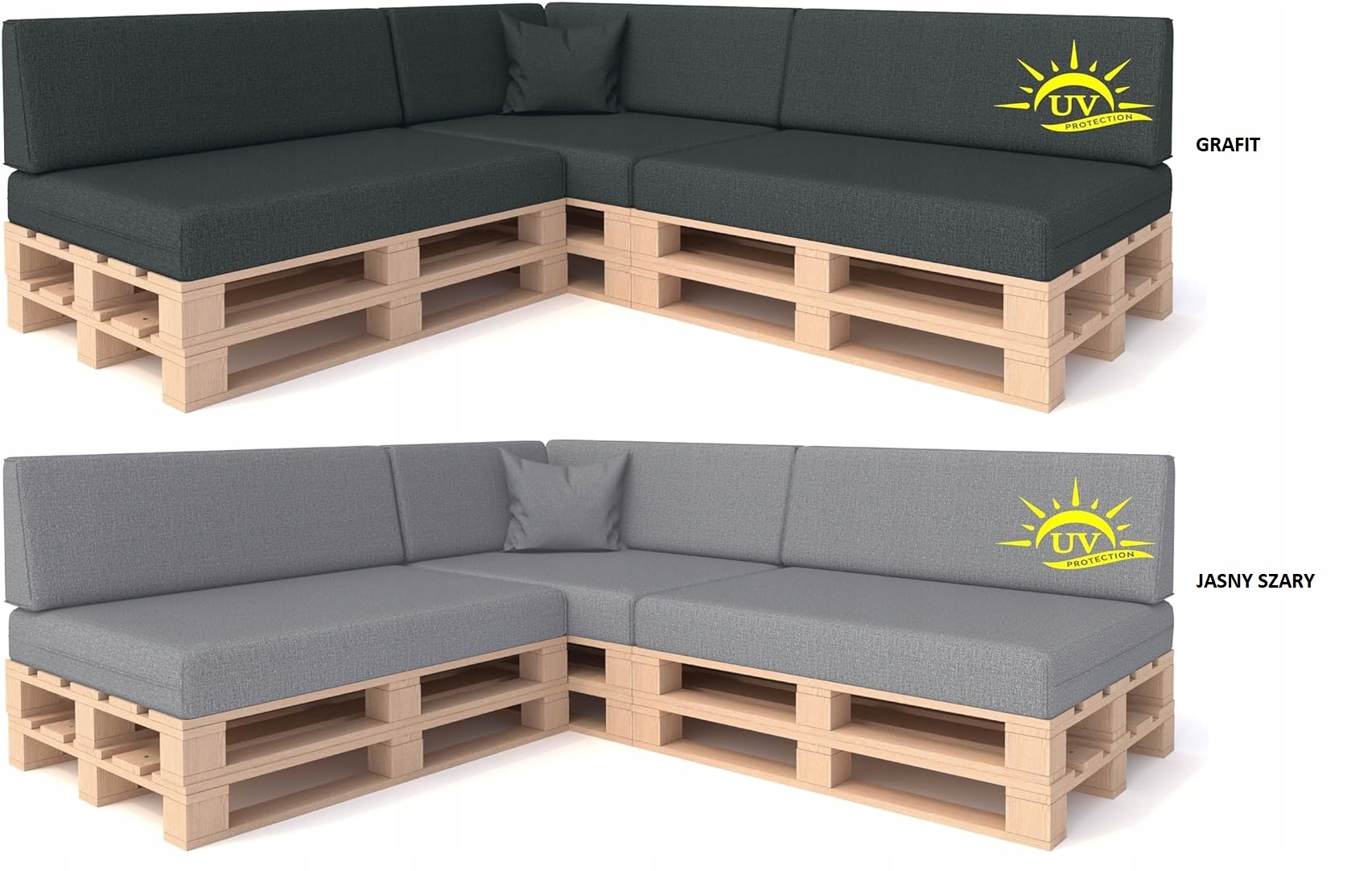 Подушки изготовлены из высококачественного материала, имитирующего льня. Материал характеризуется высокой устойчивостью к ссадин и механической активности. Он обладает водонепроницаемыми свойствами (он не должен подвергаться воздействию длительной воды). Подушка начинка является полиуретановой пеной, устойчивой к вмятину. Подушки имеют съемные чехлы, которые можно промыть при 30 градусах.