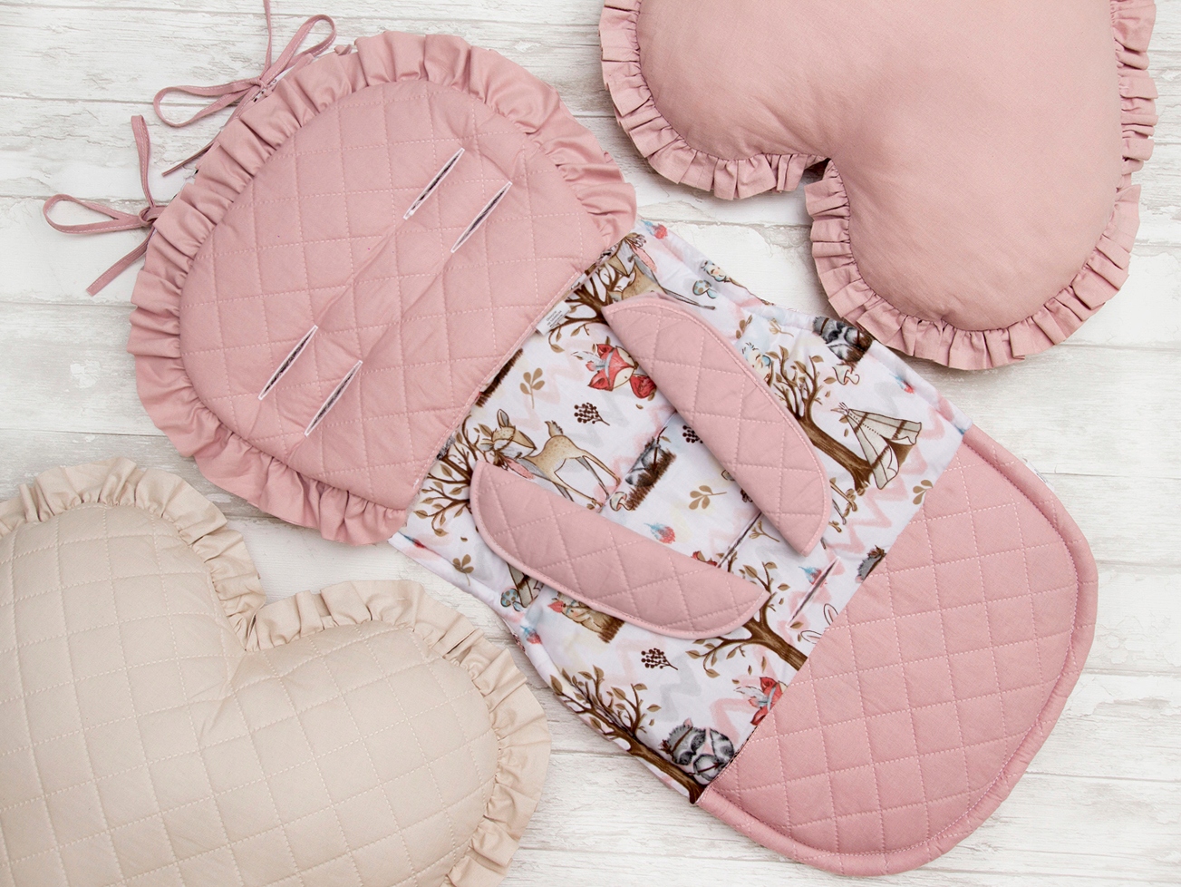 Двусторонняя хлопчатобумажная коляска + подушка с набором + полосами для ремней