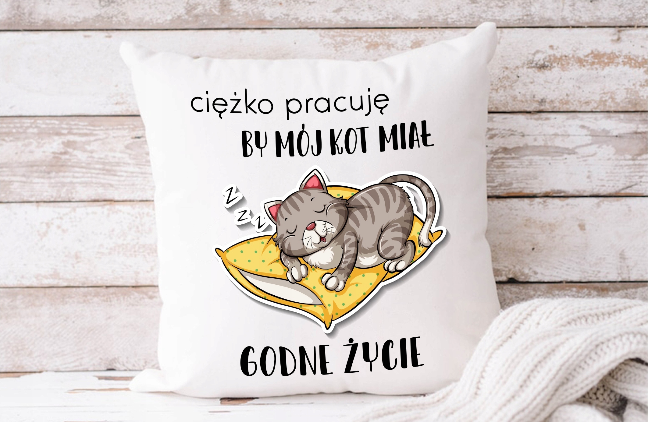 Poduszka Ciężko pracuję by mój KOT miał godne życi