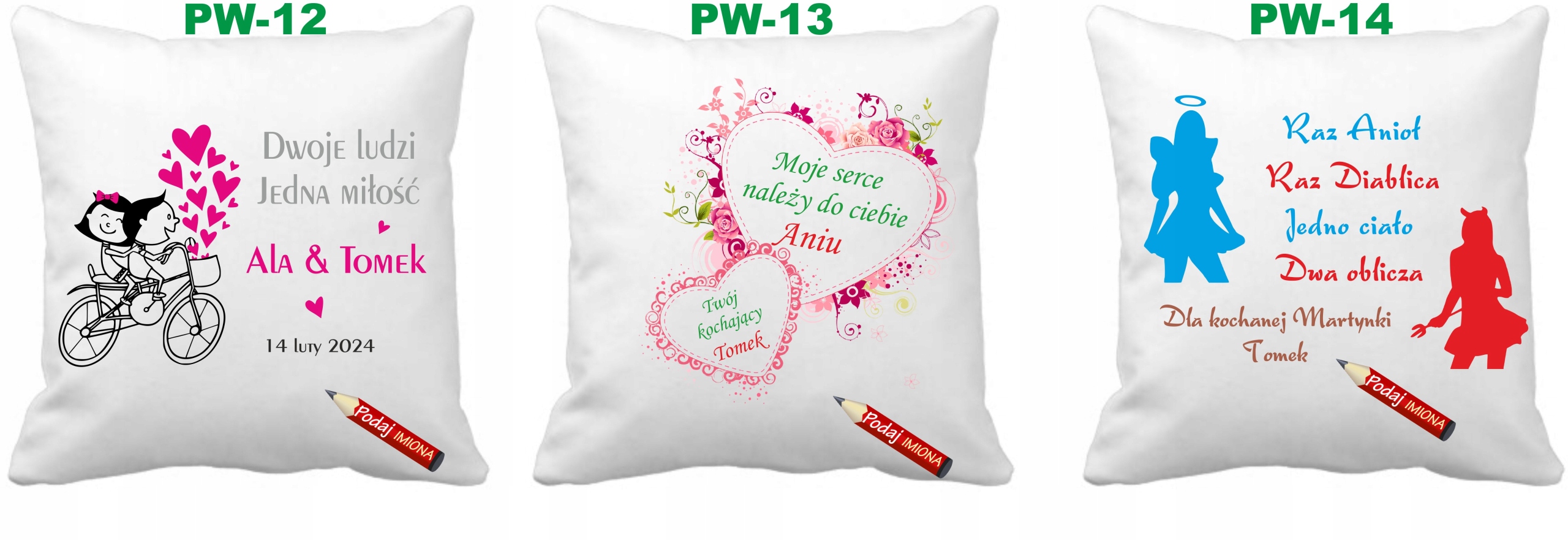 Poduszka Walentynki dla niego+ imiona imię Wzory MIX