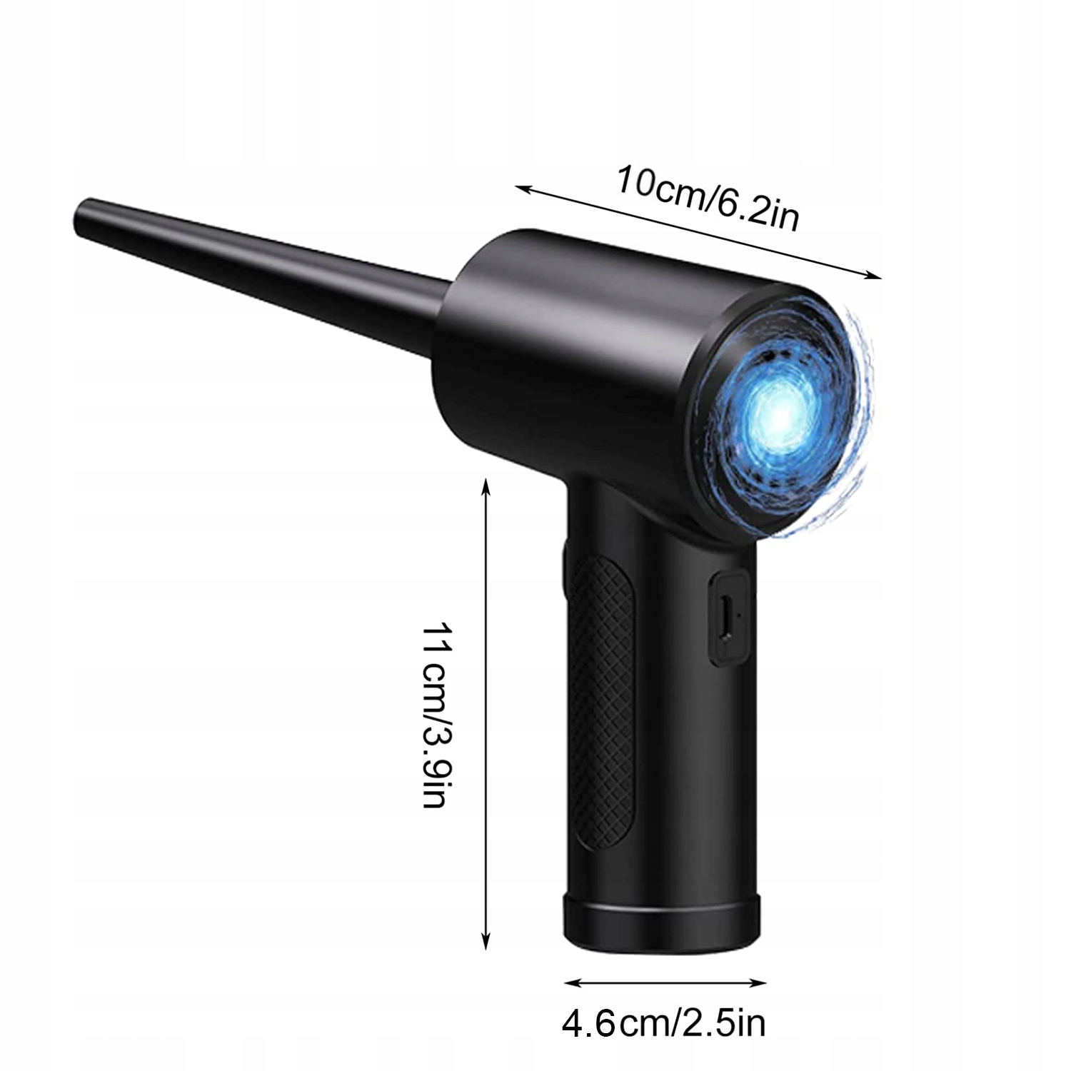 - Беспроводной электрический воздушный пылесос. Электрический воздушный пылесос оснащен встроенным аккумулятором емкостью 6000 мАч, его можно быстро заряжать за 3,5 часа, который может работать непрерывно в течение 20- 35 минут. Время использования зависит от силы обдува. В комплект поставки входит кабель для быстрой зарядки USB C, его можно заряжать с помощью автомобильного зарядного устройства или портативного ноутбука.