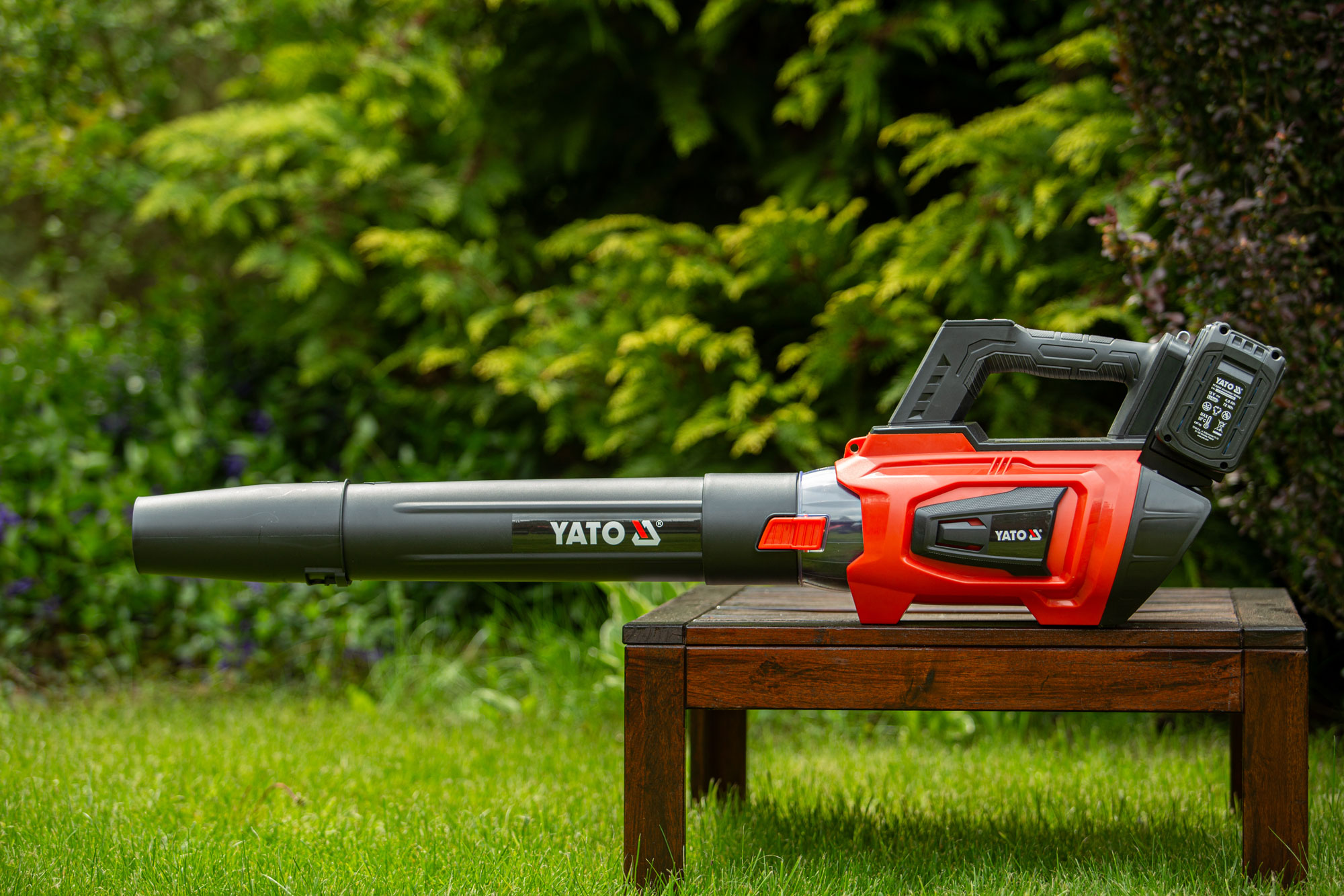 Вентилятор работает от бесщеточного двигателя и двух аккумуляторов YATO 18 В.