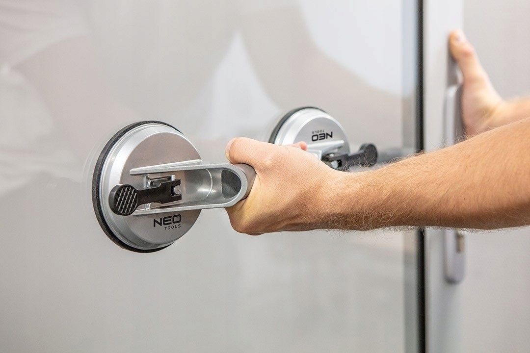 ✅ Двойная стеклянная присоска NEO используется для транспортировки и установки стеклянных и металлических или пластиковых плит.