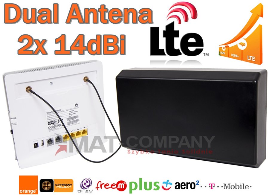 - Заводская, высокая антенна 2x 14dbi
