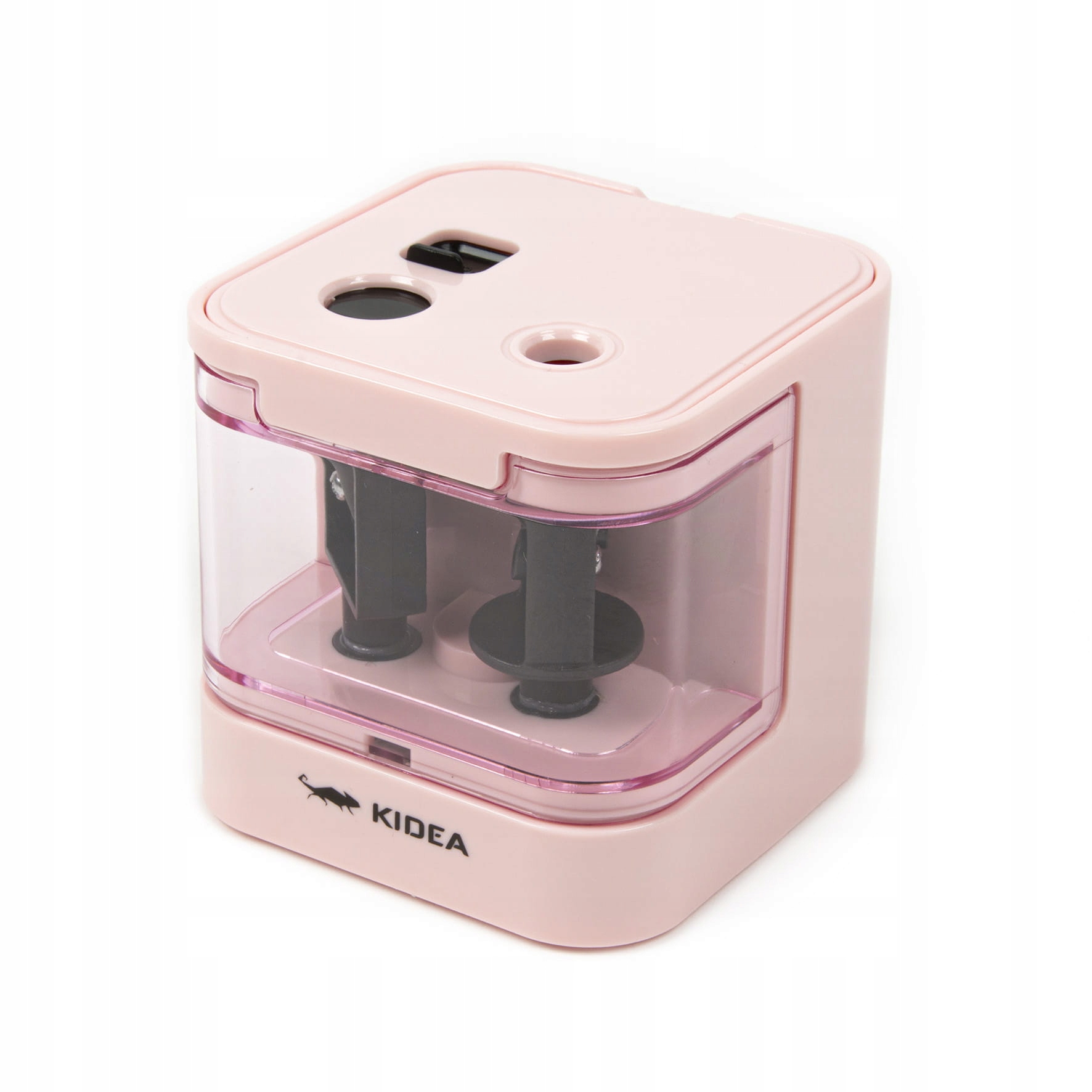 Электрическая точилка заточит карандаши и мелки двух толщин за несколько секунд. Он функционален, безопасен в использовании и удобен благодаря небольшому размеру, что также облегчает его хранение. Замок на большом отверстии защищает от случайного попадания пальцев в лезвие. В точилке установлен датчик безопасности, благодаря которому точилка не будет затачиваться при снятом контейнере для бритья. Пастельно-розовый оттенок и уникальный дизайн точилки прекрасно смотрятся на столе.