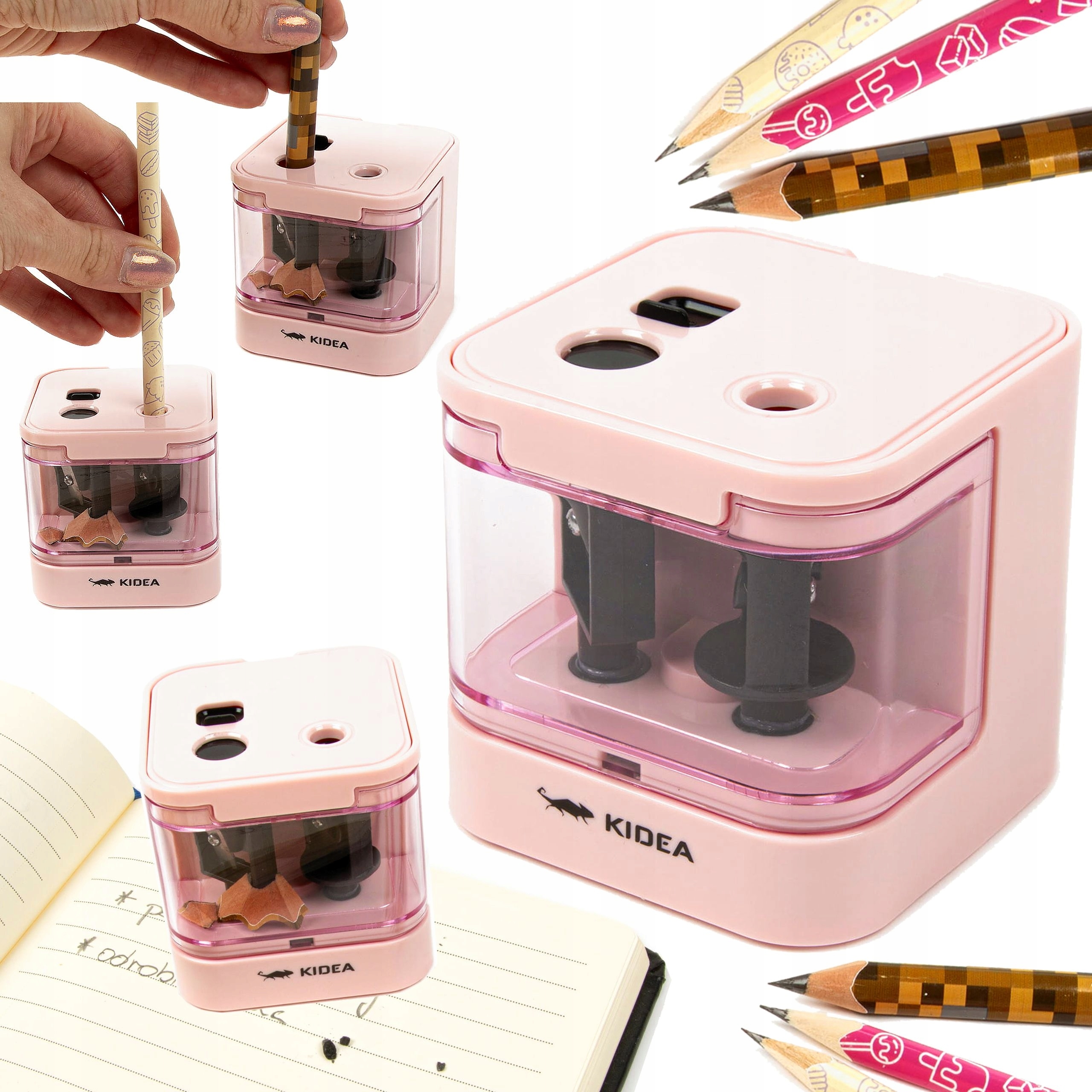 KIDEA PINK ДВОЙНАЯ ЭЛЕКТРИЧЕСКАЯ ТОЧИЛКА 2 ТОЛЩИНА МЕЛКОВ 6-7/8-12 мм
