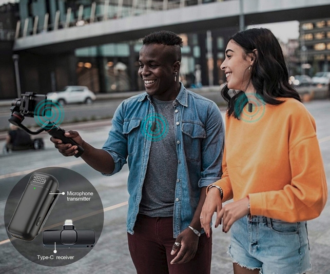ПОДВІЙНА МІКРОФОННА СИСТЕМА 2x БЕЗДРОТОВИЙ МІКРОФОН USB-C