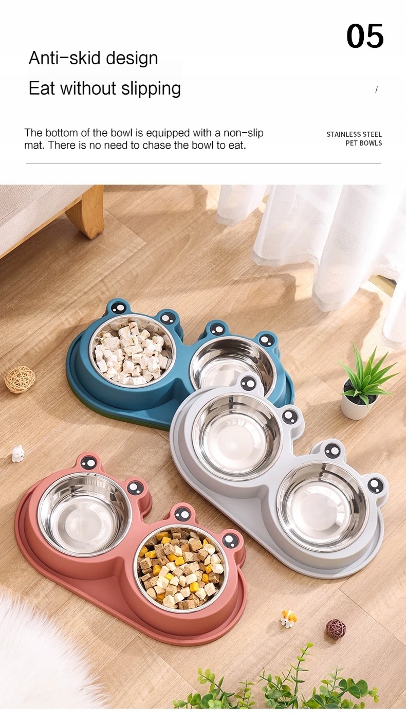 Двойная миска для собаки из нержавеющей стали, съемная, серая, нескользящая, 400 мл