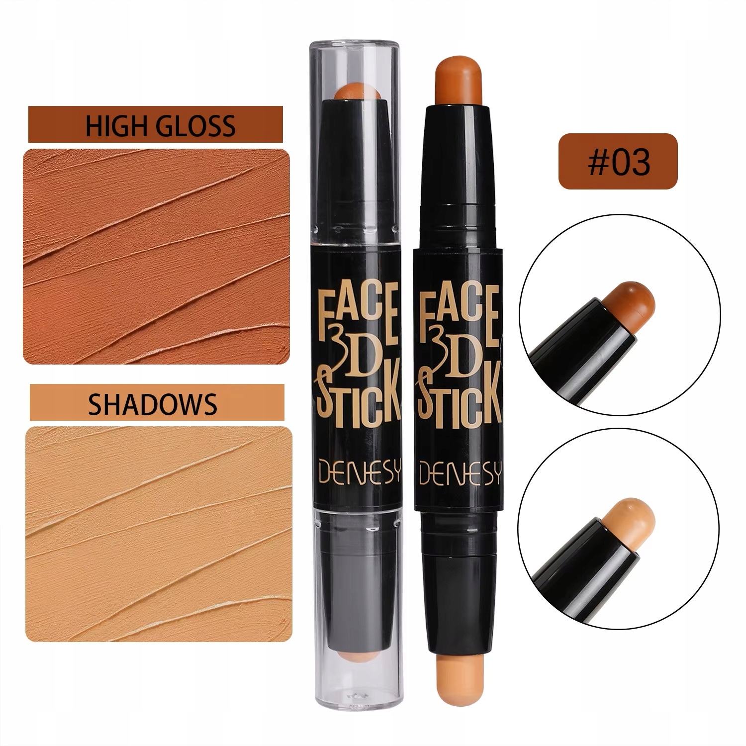 двойной контурирующий палочка: благодаря этой контуре макияжа, вы можете легко создать естественный и идеальный вид. Один конец - это осветляющий цвет, который осветляет и подчеркивает особенности лица, а другой - цвет тени, которая определяет и вырезает лицо.