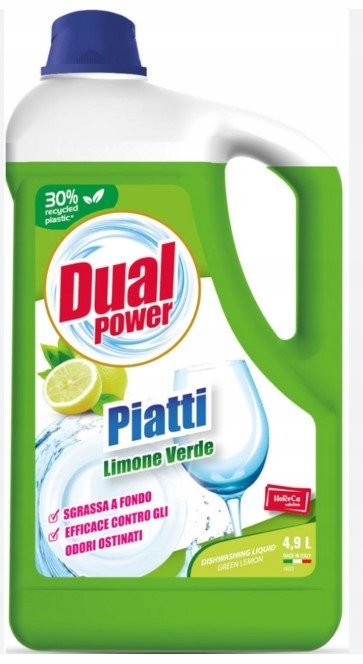 лимоновая сосудистая жидкостьDual Power Limone Verde - это эффективный и эффективный чистящий агент, который идеально удаляет жир и грязь, оставляя блюда блестящими чистыми.