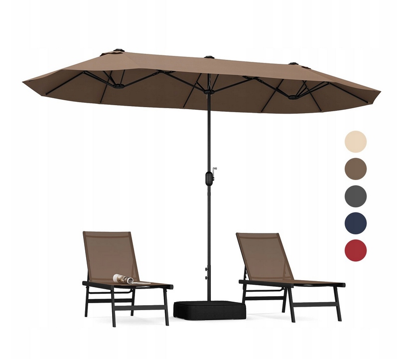 Двойной садовый зонт для террасы с подставкой и ручкой, очень большой, 400 см.
