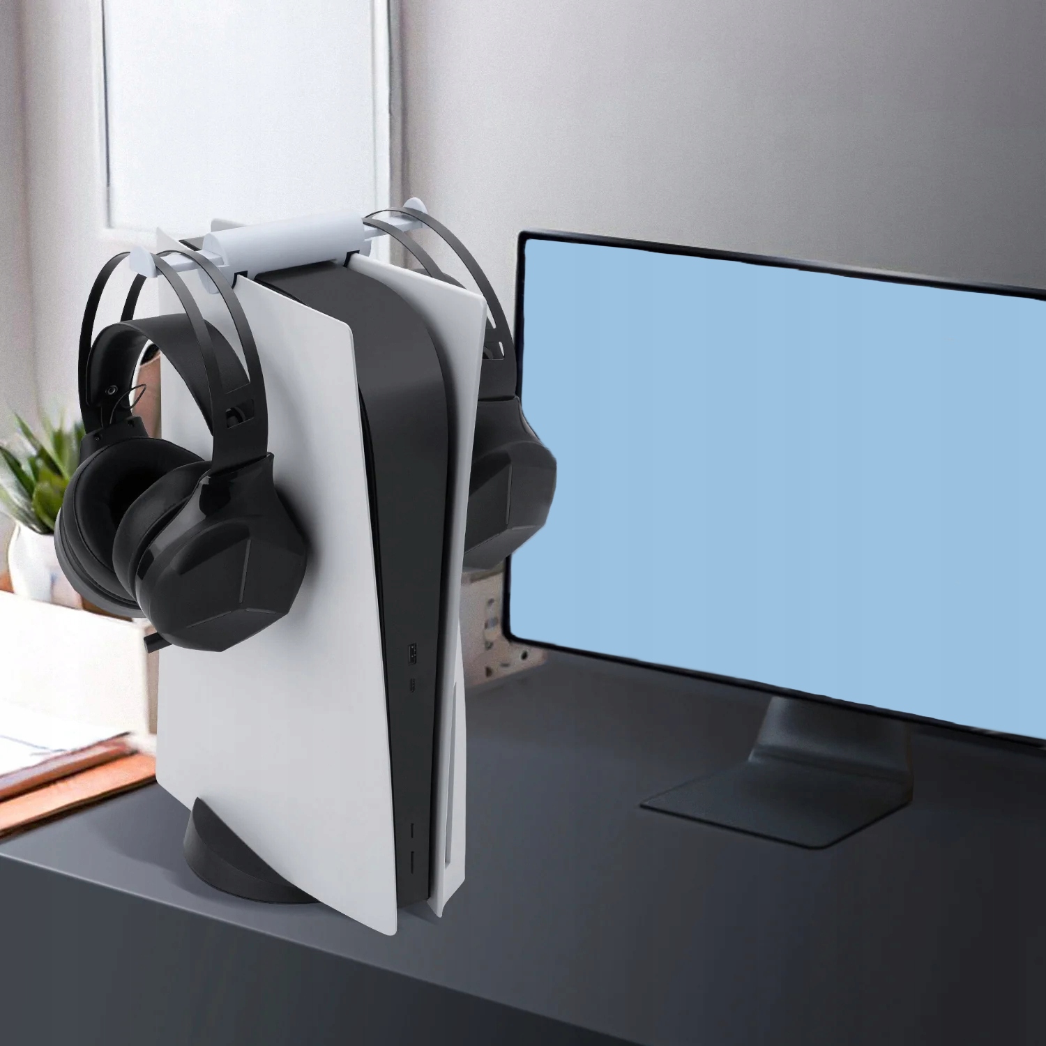 Аккуратная выдвижная вешалка от DOBE, установленная на вертикально стоящей консоли PS5 (не подходит для PS5 Slim) p>
