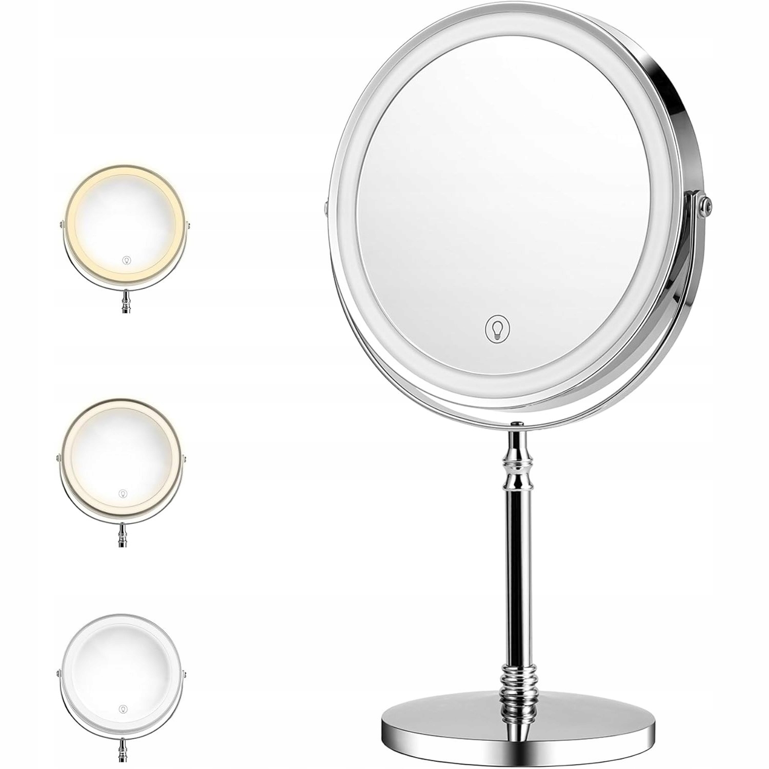 ✨ 【3 красочные режимы освещения и прикосновение потемнения】: освещенное косметическое зеркало излучает белое, теплое и естественное свет. Вы можете выбрать разные светлые цвета в зависимости от макияжа, необходимого для различных случаев. Включите/выключите светодиодный свет с помощью переключателя сенсорного датчика, нажмите длинную, чтобы отрегулировать яркость света, и нажмите кратко, чтобы изменить цветовую температуру.