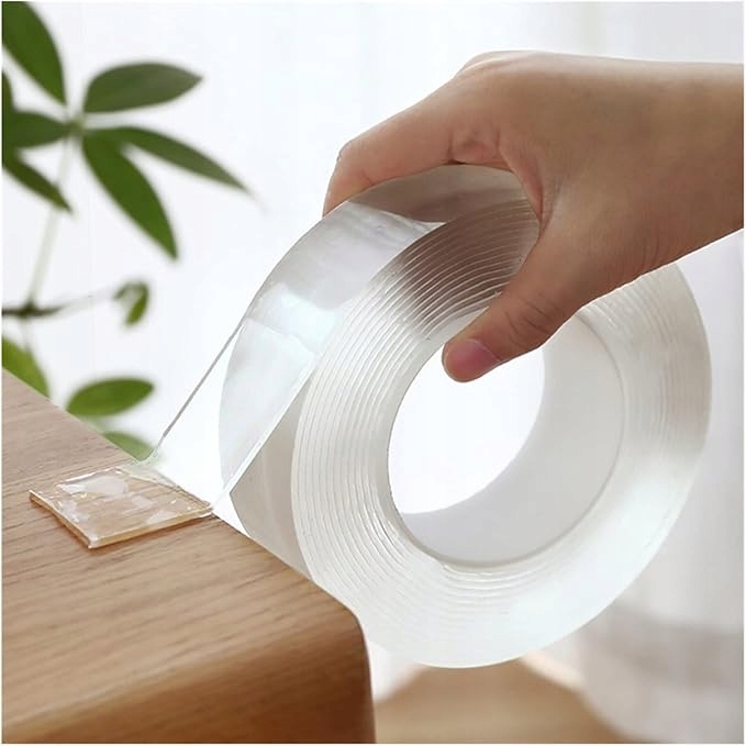 лента прозрачна и идеально подходит для поверхностей из стекла, мрамора, металла, керамической плитки, пластика и кожи.