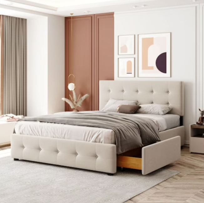 - Классический стиль : классическая и сплошная рама кровати, бархатный материал и четыре ящика для хранения. Эта классическая обитая кровать с платформой идеально подходит для взрослых, детей и подростков. с 4 колесами), идеально подходит для хранения предметов домашнего обихода. Скрытое пространство для хранения, эстетическое и практичное. Он также имеет подкладку пены с высокой плотностью. Комбинация стальной рамы и пенопласта обеспечивает тихой, мягкий и эластичный сон, так что вы можете насладиться спокойной и удобной ночью. : Благодаря прозрачным инструкциям вы можете легко установить