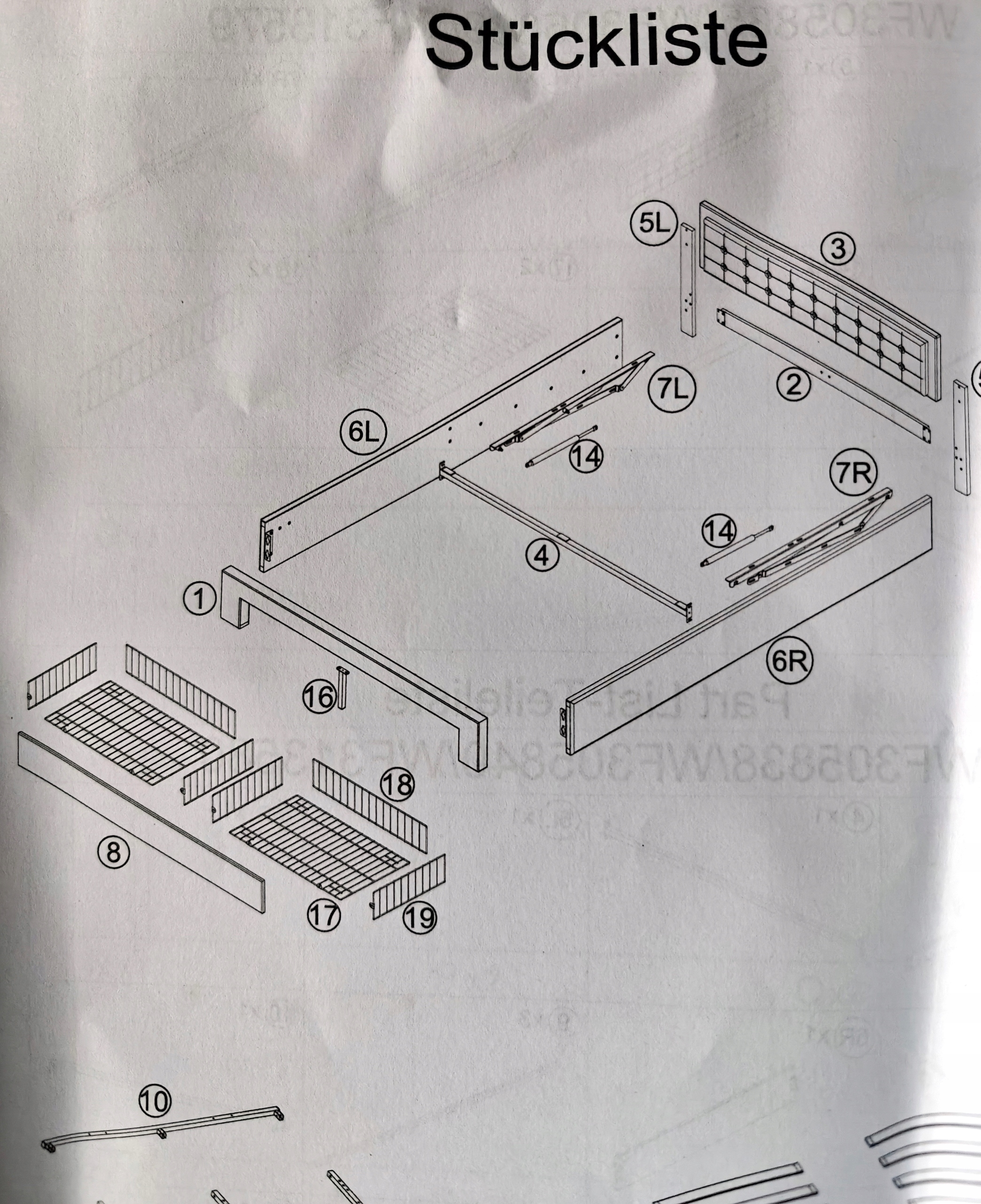 двойная обившая кровать с изголовью и функцией хранения (гидравлическое подъем) с 2 ящиками, деревянной полосой h2> Примечание! Транспортный ущерб, элемент 6L, отмечен на фото. h1>