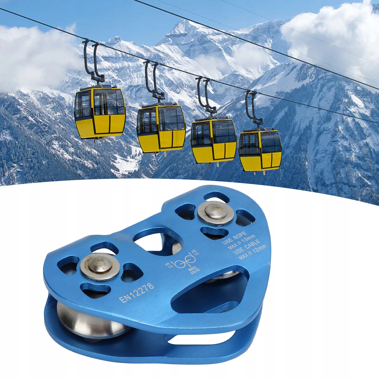 Двойной скалолочный блок Zipline в форме ролика в форме сердца для кабельного транспорта в форме сердца, синего h1>