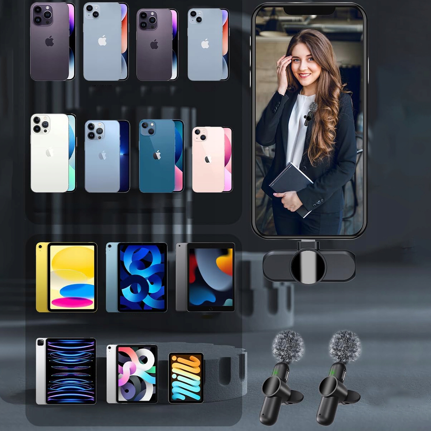 🎙️ Автоматическое сопряжение: Беспроводной петличный микрофон — это небольшой портативный микрофон, который можно носить на воротнике или на лацкане. Он широко используется в потоковом вещании и производстве видео для записи четкого и высококачественного звука без необходимости использования громоздких микрофонных стоек. Портативный беспроводной петличный микрофон свободно перемещается, без необходимости использования дополнительных кабелей, приложений или Bluetooth, просто подключите и пользуйтесь.
