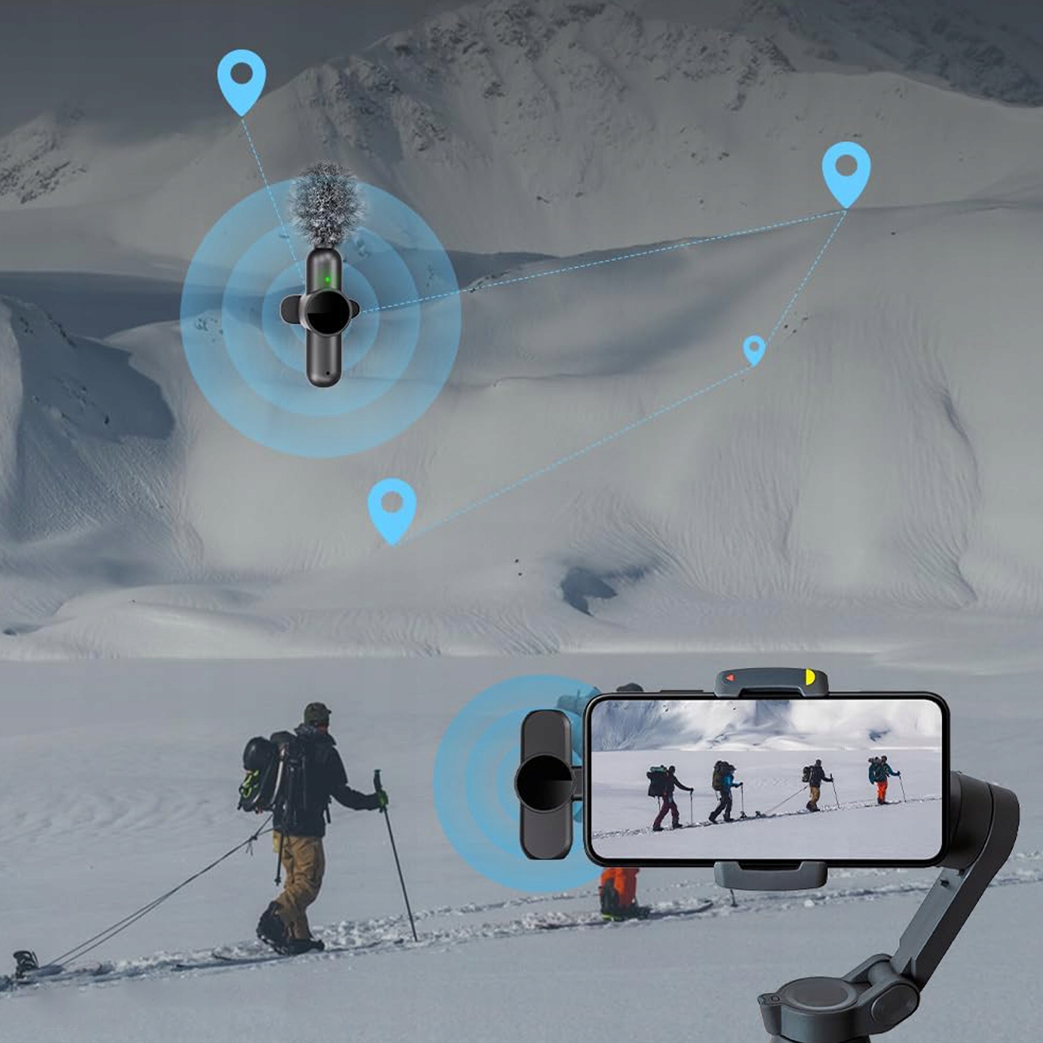 🎙️ Интеллектуальное шумоподавление: Модернизированная схема шумоподавления, сферический микрофон с шумоподавлением, высокочувствительной головкой микрофона, режимом записи на 360°, обеспечивающим четкую запись даже в шумной обстановке. Беспроводной микрофон также оснащен ветрозащитной губкой, которая снижает шум ветра, и системой защиты от помех, уменьшающей помехи в окружающей среде.