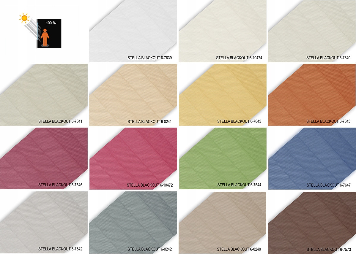 STELLA BLACKOUT — материал с очень гладкой, чистой структурой. Ткань прорезиненная, поэтому затемняет комнату на 100%. Резина снаружи белая.