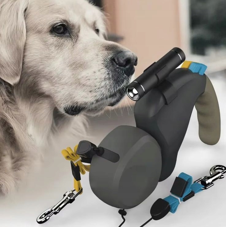 Двойной автоматический поводки для собак для 2 собак с 3 -метровым замком фонарика