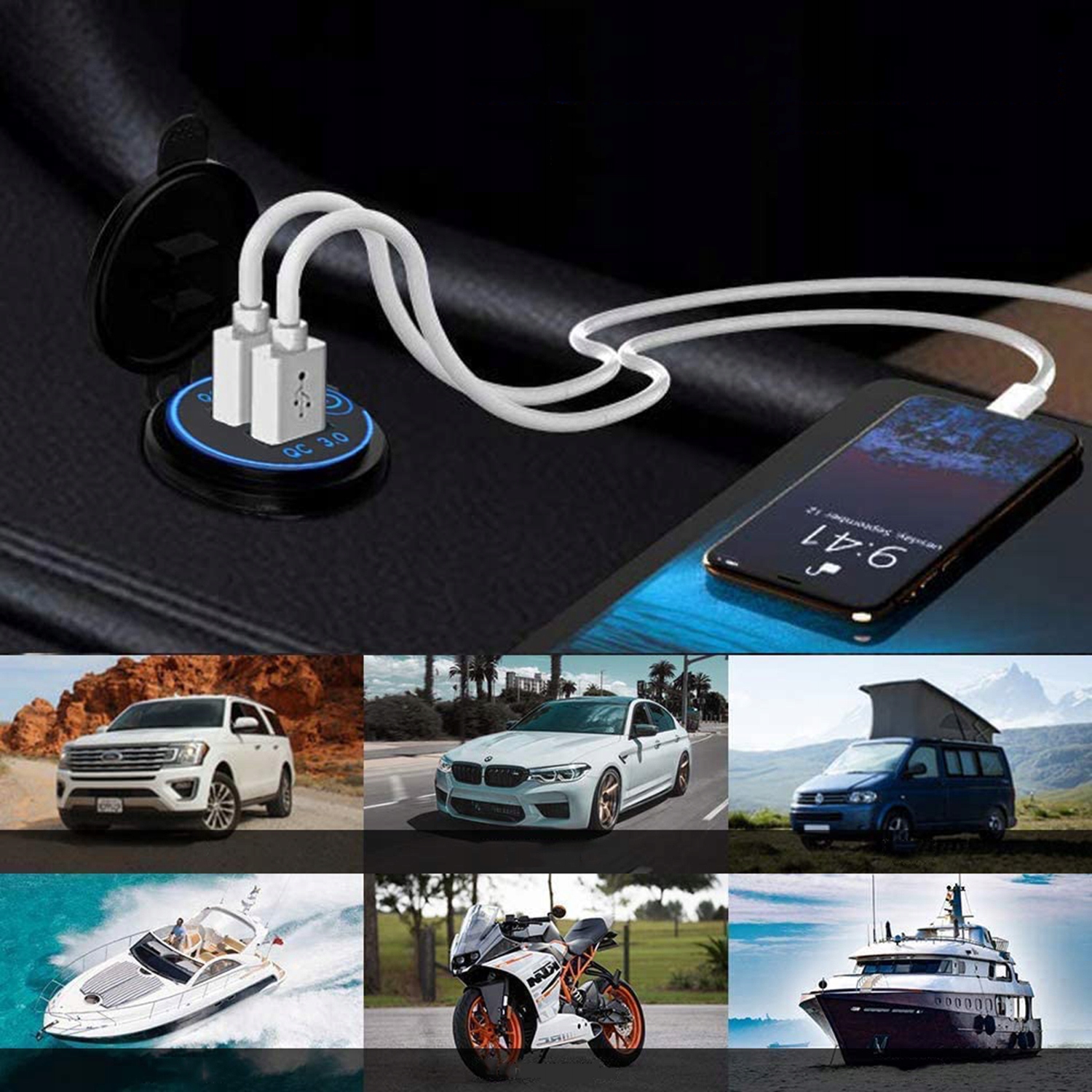 ⚡ 【【【сенсорное переключатель питания】 Наш USB -сокет 12 В оснащен сенсорным переключателем, который управляет двумя портами USB и издает тонкий синий светодиодный свет. Он предотвращает потерю энергии, экономит энергию и продлевает срок службы как продукта, так и подключенных устройств. Синий светодиодный свет также облегчает местонахождение в темноте.