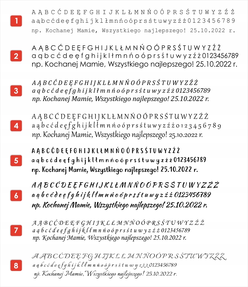 После покупки сообщите, пожалуйста, содержание гравировки и номер выбранного шрифта в сообщении продавцу, например: