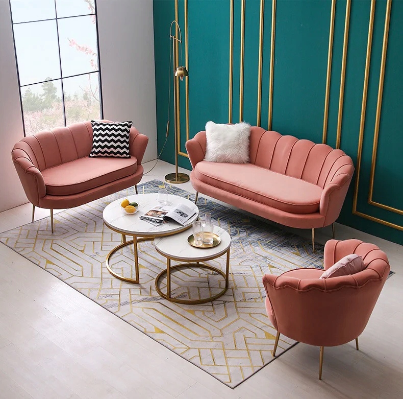 ✅ Золотые ножки - Добавьте диван роскошный отдел и элегантность, подчеркивая его уникальный характер. Shell- диван в форме раковины впечатляет элегантным, волнистым дизайном, который придает внутреннюю легкость и тонкое очарование.
