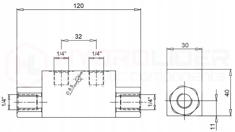 ДВОЙНОЙ ГИДРАВЛИЧЕСКИЙ ОБРАТНЫЙ КЛАПАН VBPDE 1/4" 20л/мин 350бар
