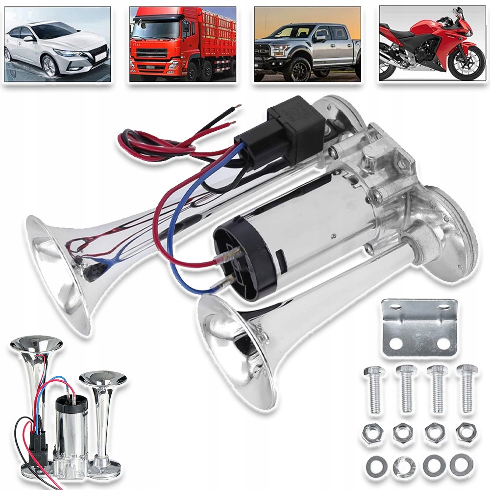 ПОДВІЙНИЙ ГУДОК ФАНФАРА ПНЕВМАТИЧНИЙ СИГНАЛ TIR 12V КОМПРЕСОР ТРУБА ГУЧНИЙ