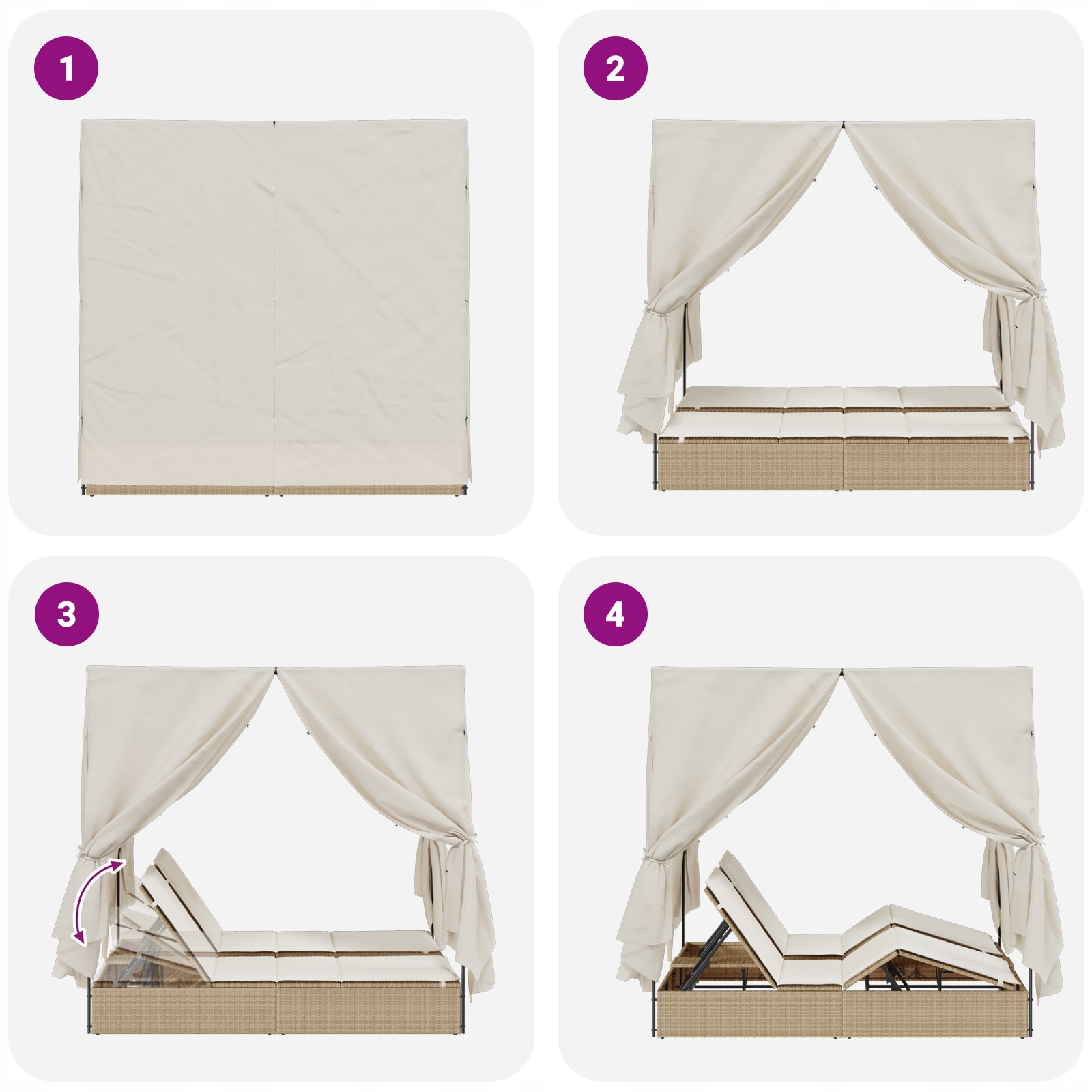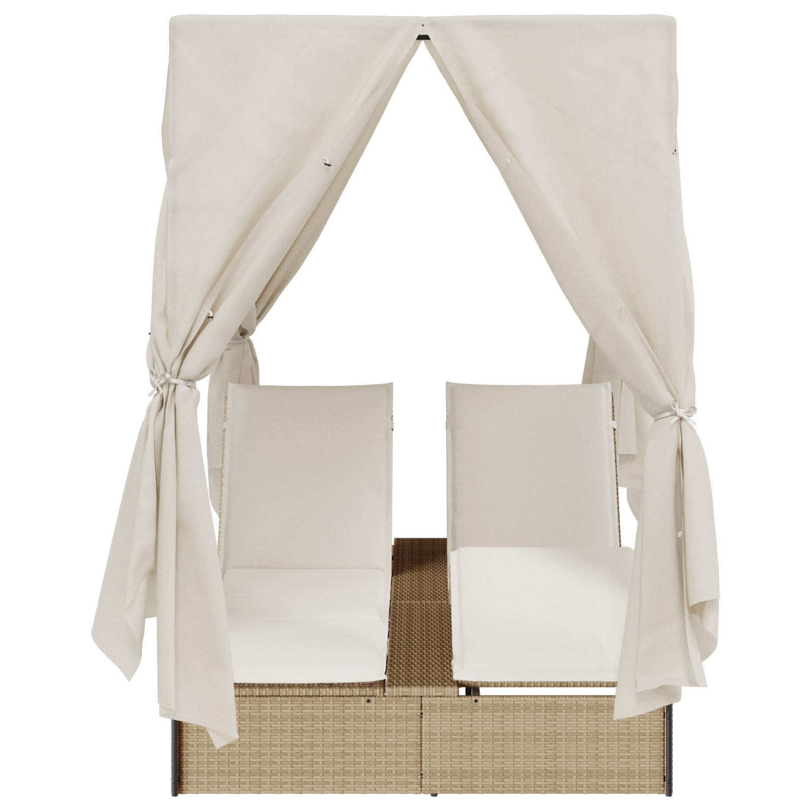 Vidaxl Double Deckchair с подвалом и шторами бежевым ротантом