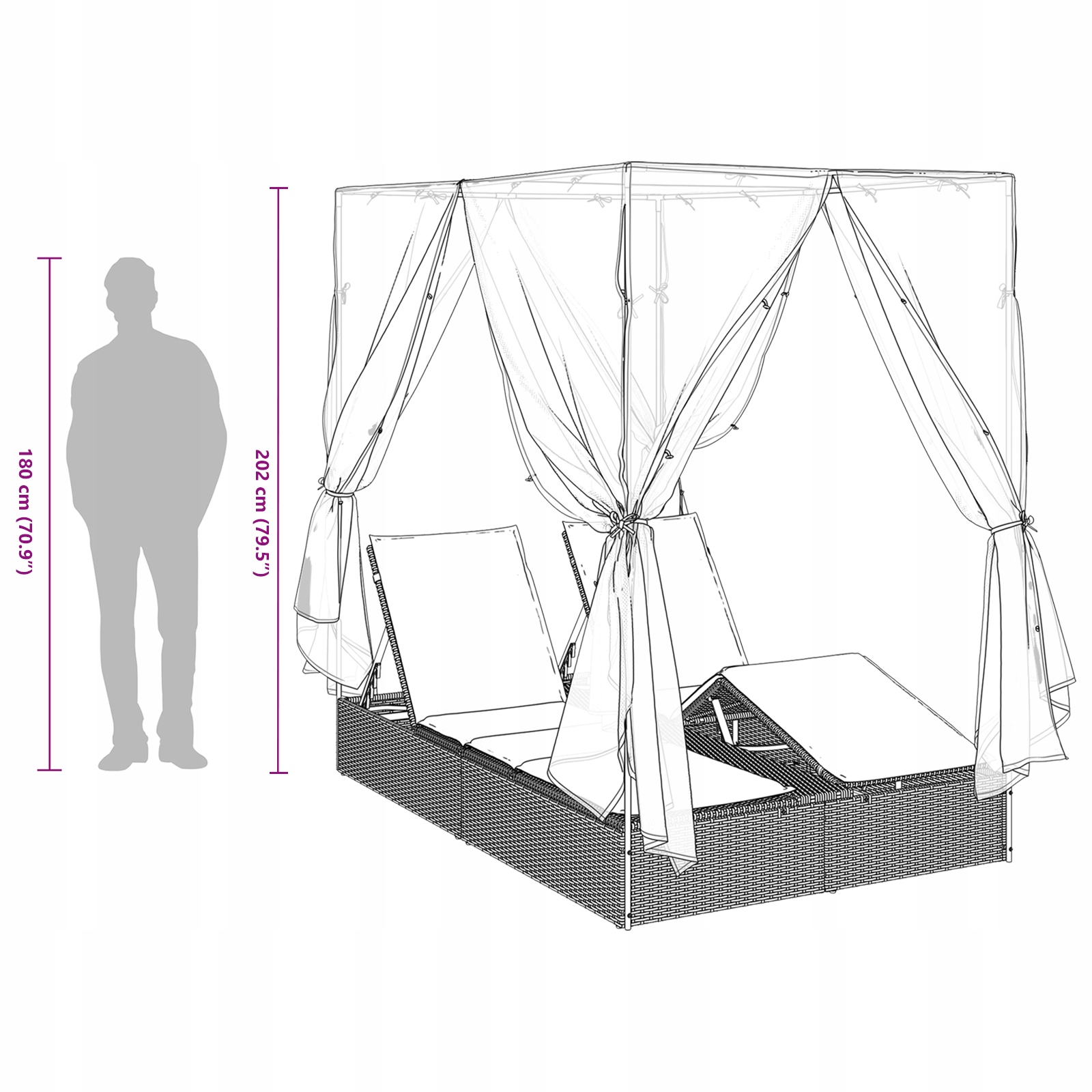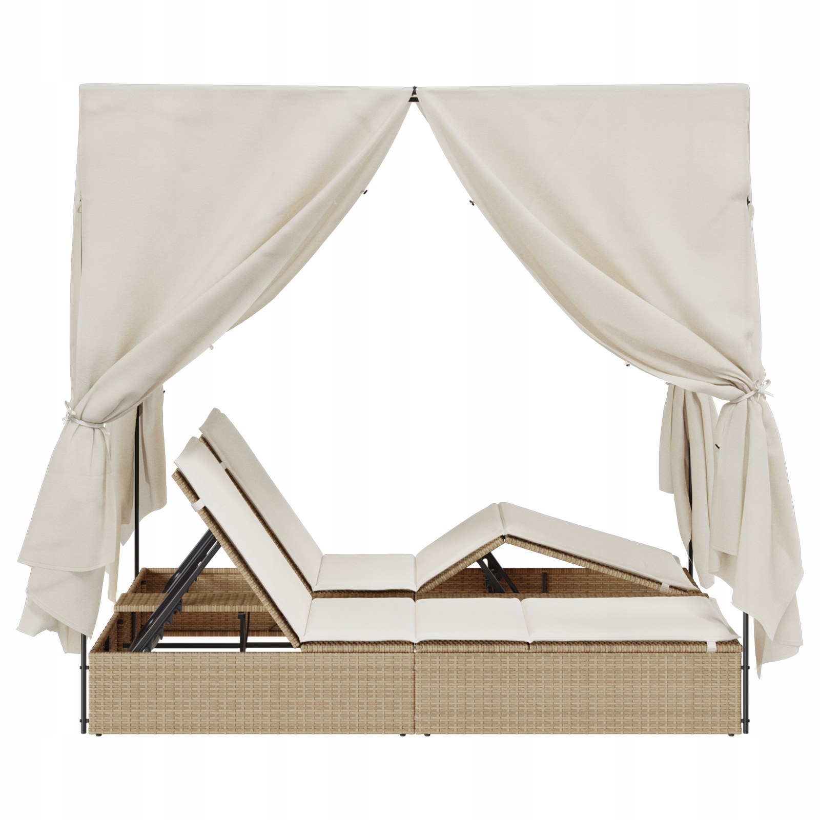 Vidaxl Double Deckchair с крышей и шторами бежевым роттаном h2>