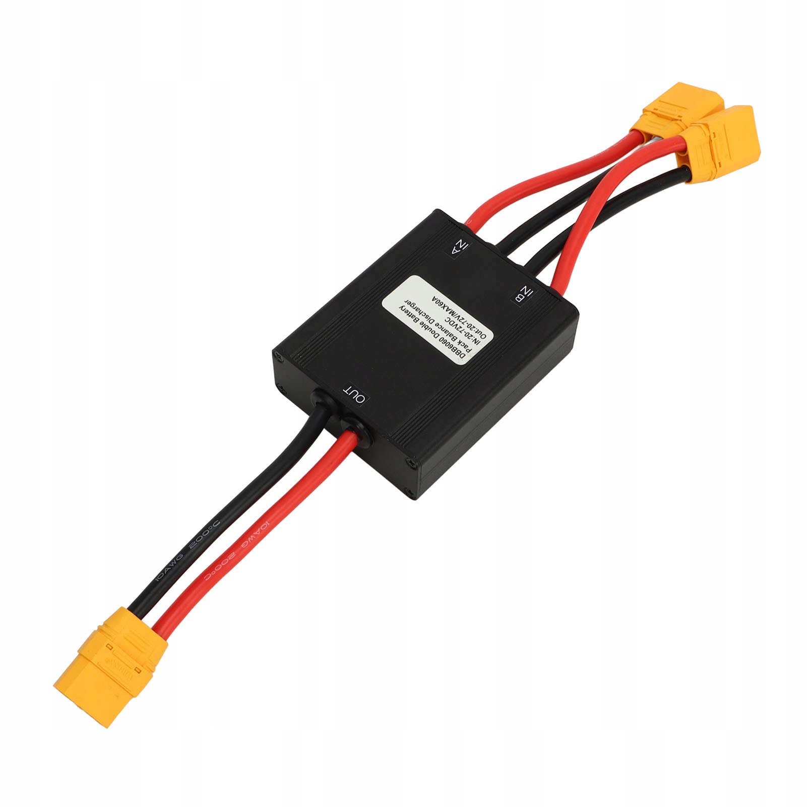 3. Интерфейс XT90 для простоты подключения: модуль оснащен разъемами XT90 с вилкой для подключения входа к двум батареям и розеткой для подключения выхода к контроллеру. Интерфейс обеспечивает простое и безопасное подключение, сводя к минимуму возможные потери мощности.