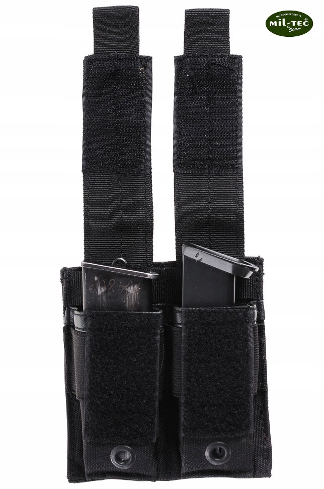 Профессиональный подсумок в модульной системе MOLLE 25 мм. Рассчитан на два магазина для пистолетов, в него можно поместить нож, фонарик или многофункциональный инструмент. Это неотъемлемая часть тактического снаряжения, обычно прикрепляемая к оперативному жилету. Может крепиться на набедренные панели, снаряжение, рюкзаки и т.п. Предназначен для военных и полицейских специалистов. Рекомендуется для любителей АСГ и реконструкции специальных подразделений.