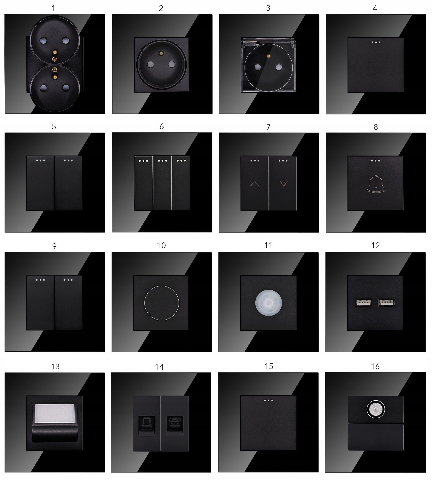 Модуль розетки можно установить во все стеклянные рамы MIUUN (доступны на других аукционах). Модули могут быть установлены в любой конфигурации (например, в тройной рамке: розетка - розетка - одинарный выключатель