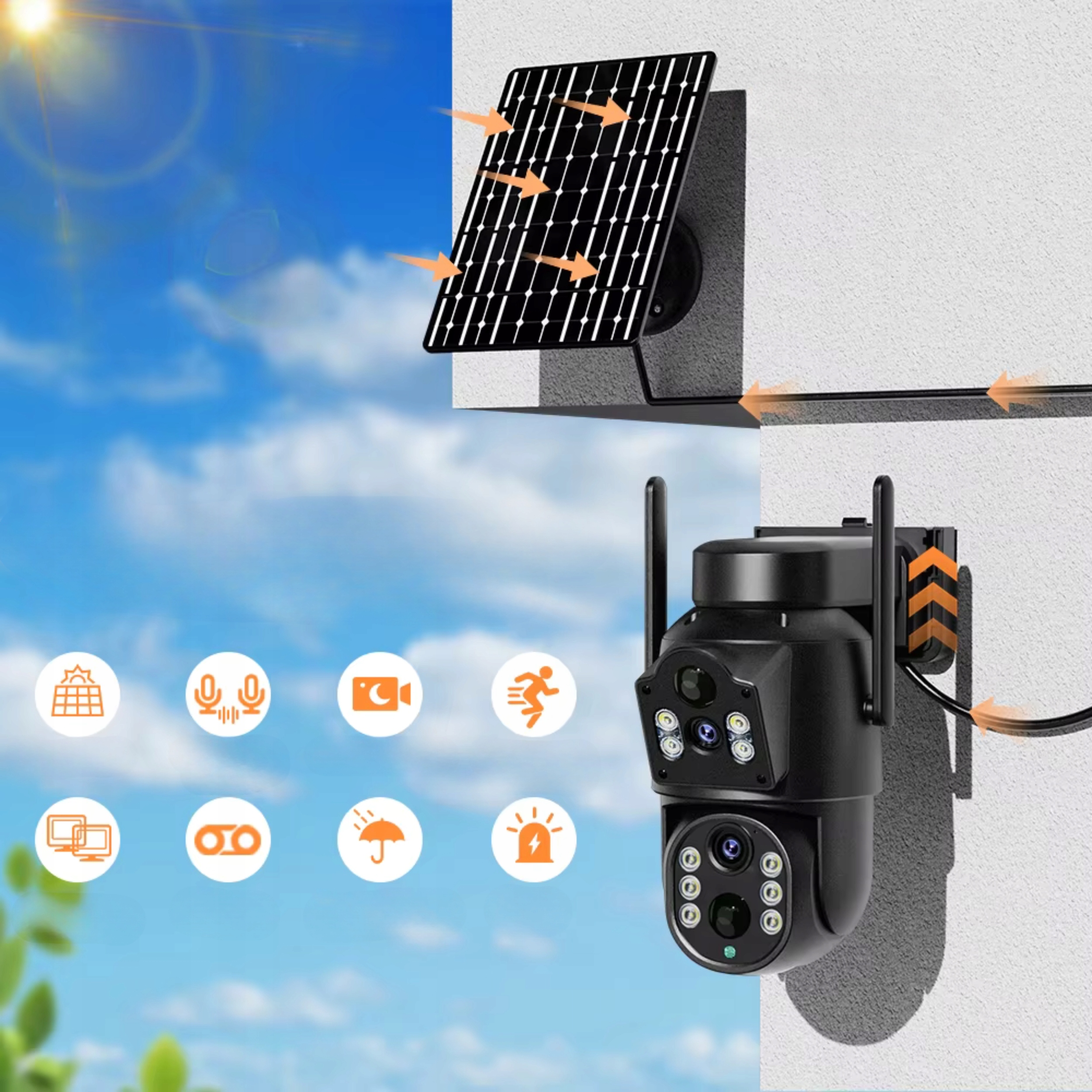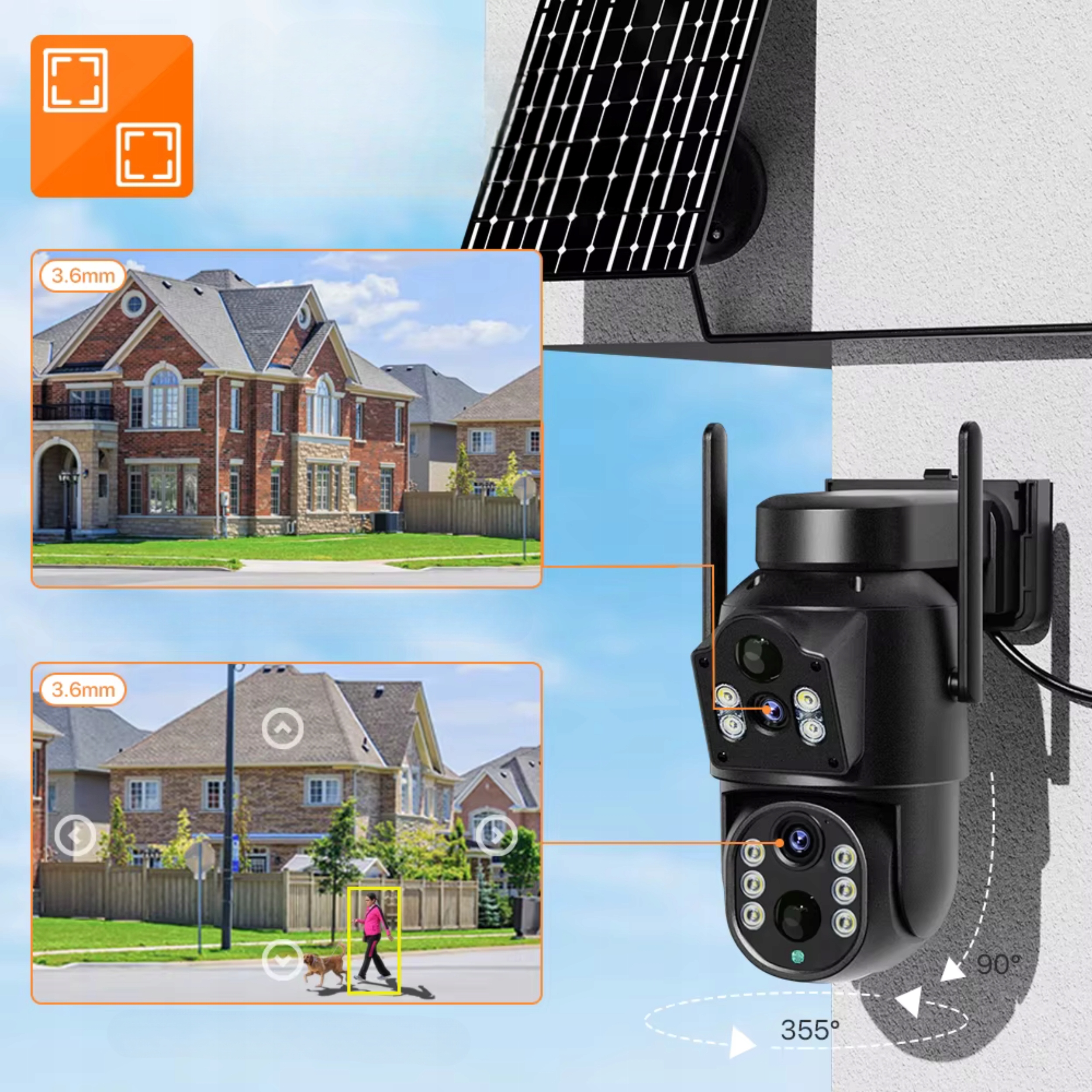 Двойная солнечная камера Wi -Fi IP IP Smart Rotary HD 6MP Zoom Icsee