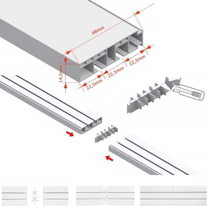Двойной потолочный рельс из ПВХ с потолочным шрифтом с 360 крышкой