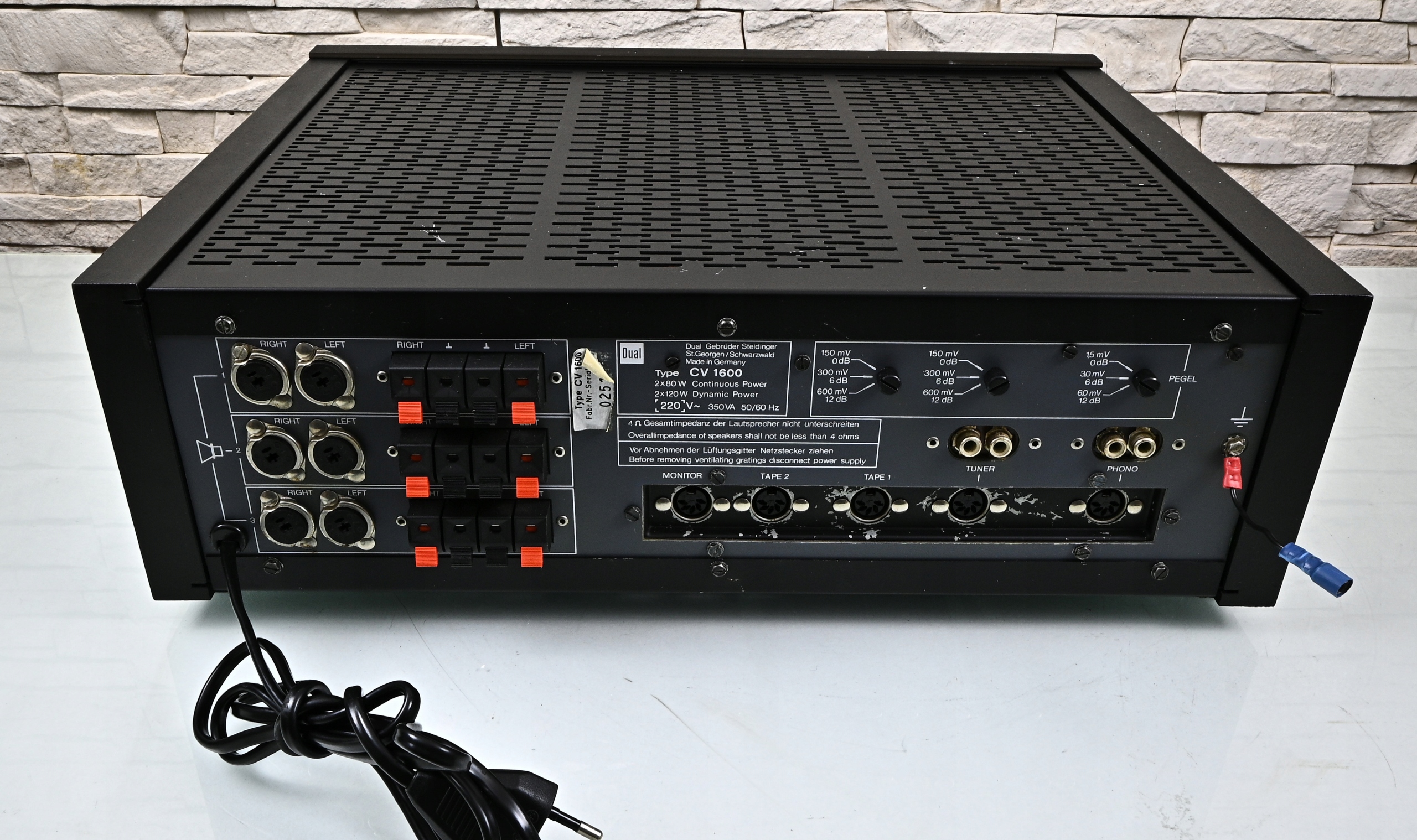 мощный, сильный и красивый усилитель авторитетной компании Dual Model 1600 с гигантской эффективностью тока. Он обеспечит и красиво будет играть на любых колоннах. Это также двойная серия, прежде чем он вошел в сферу пластиковых игрушек. Эта модель была использована, а не экономия на деталях. В дополнение к красивому звуку, у нас огромный запас энергии.
